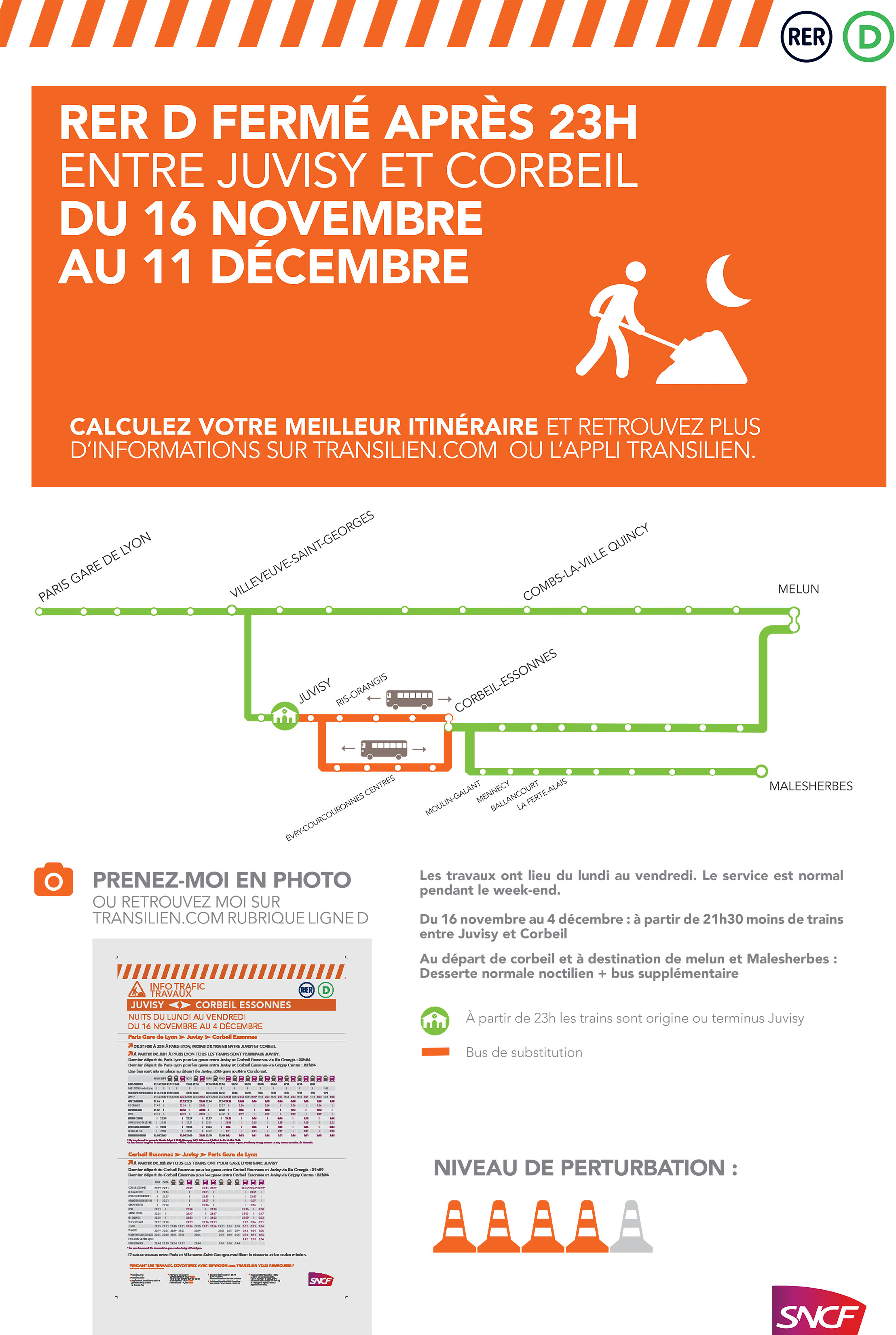 Plutôt que des flyers ou des papiers à gogo, pourquoi ne pas faire une grande compagne de communication pour s’inscrire à une mailing liste travaux (comme le club ligne D ou R), ou aux alertes du site Transilien?
