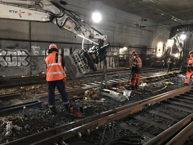 Afin d’éviter des interruptions trop importantes pour vous, il a été décidé de faire ces interruptions en marge des circulations autant que possible. C’est pour cela que chaque nuit, depuis le 19 octobre jusqu’à mi-décembre, au moment des dernières circulations et avant les premières, les agents de SNCF Réseau agissent sur les voies.